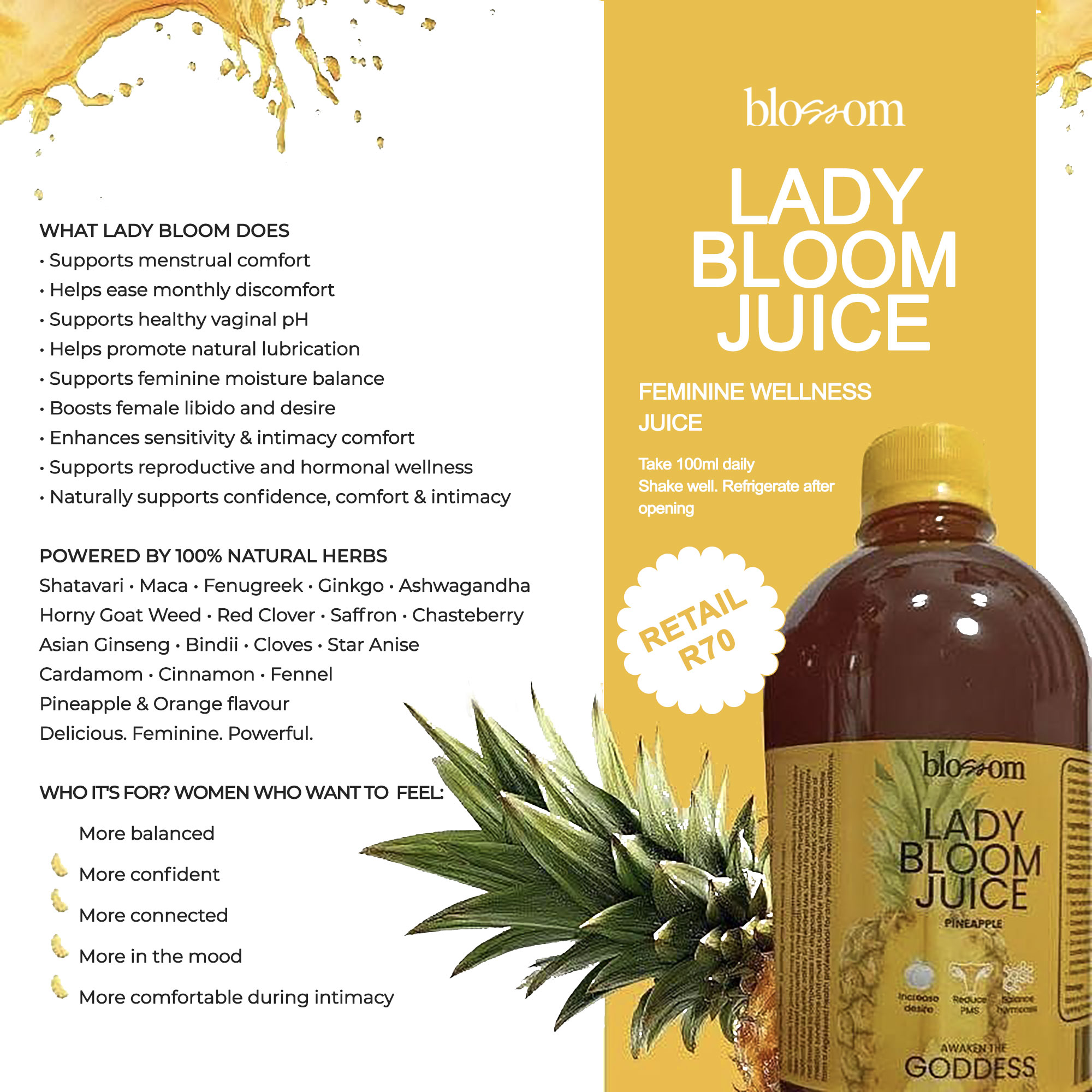 BlossomĀ – Lady Bloom Juice helps women awaken the goddess within and men to rise to the occasion.