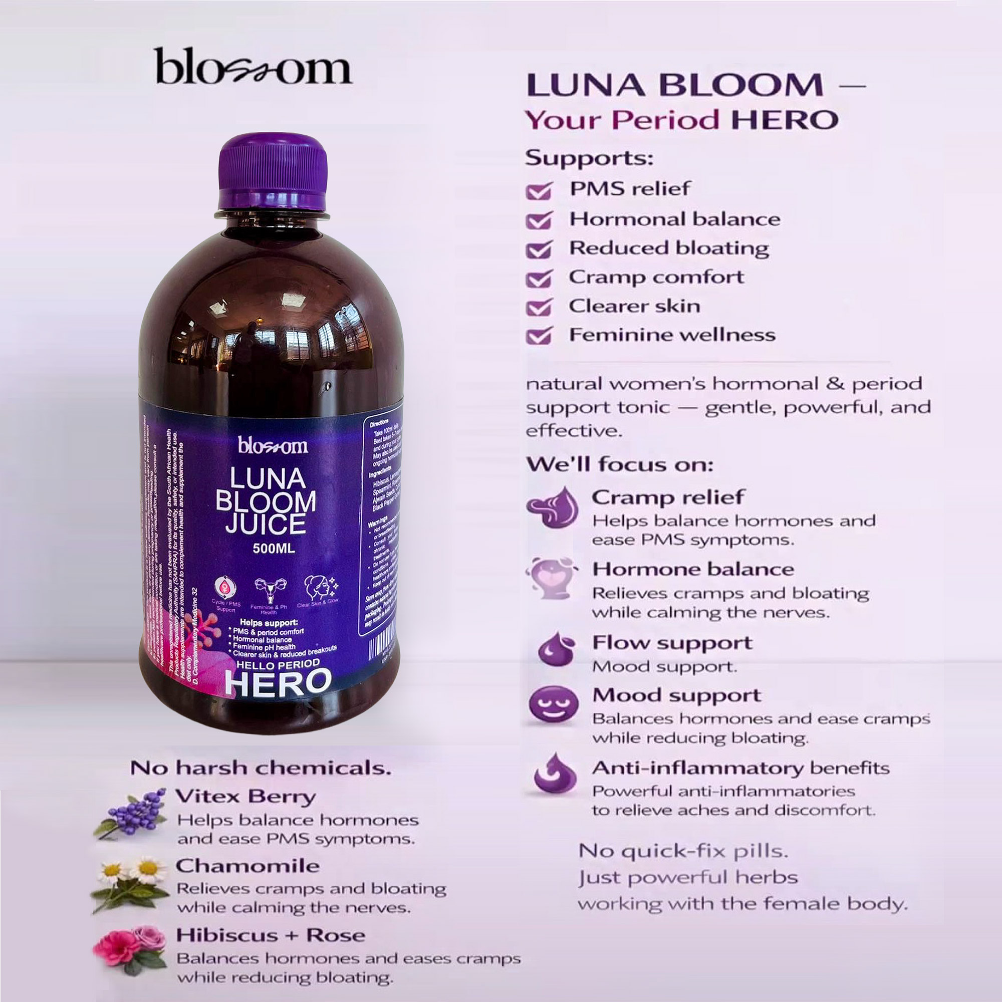 BLOSSOM LUNA BLOOM JUICE – Your Period HERO!